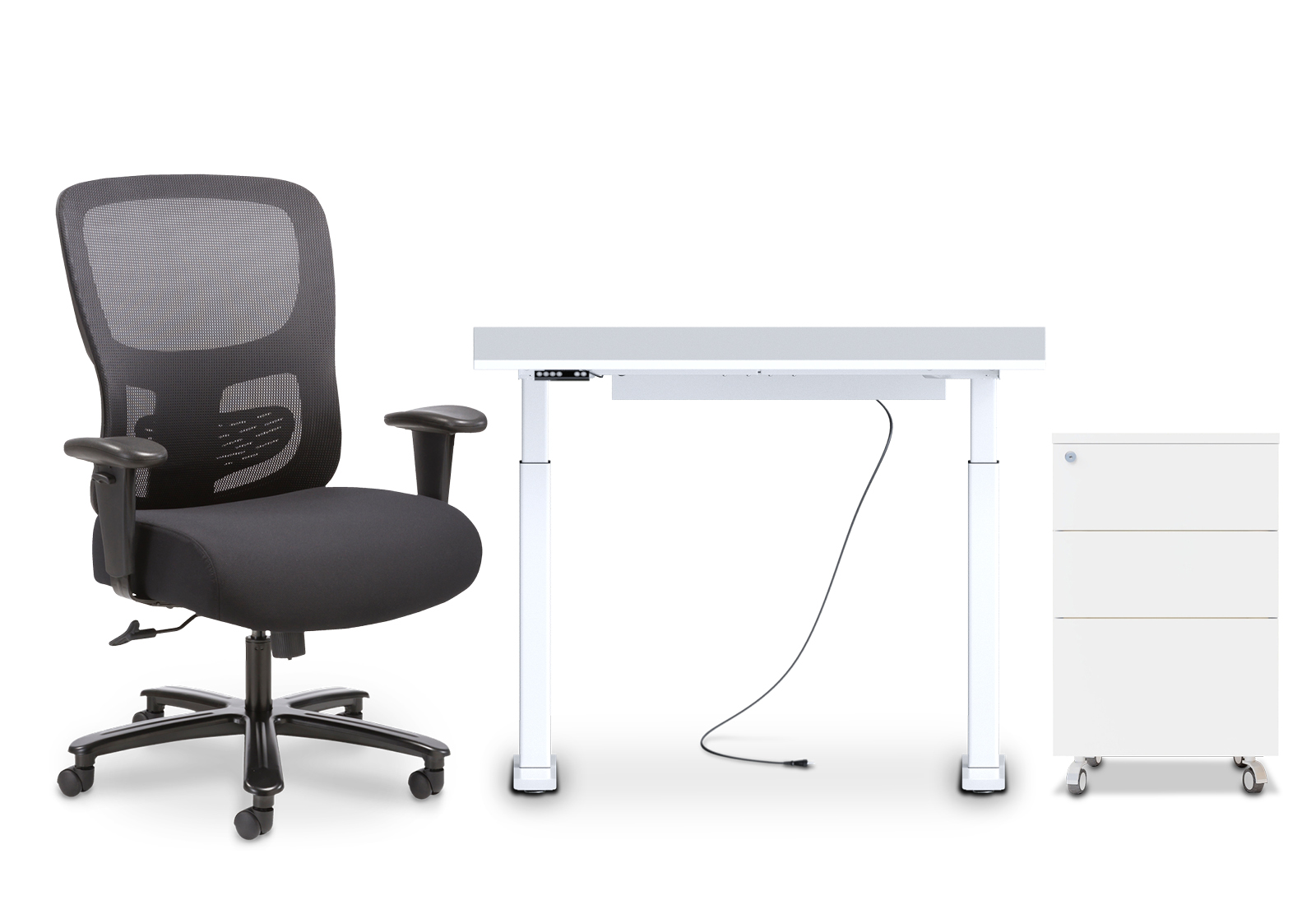 Ensemble de mobilier de bureau : Chaise de bureau XXL TINA, bureau réglable en hauteur MILLA120 et caisson roulant FRIDA de TOPREGAL