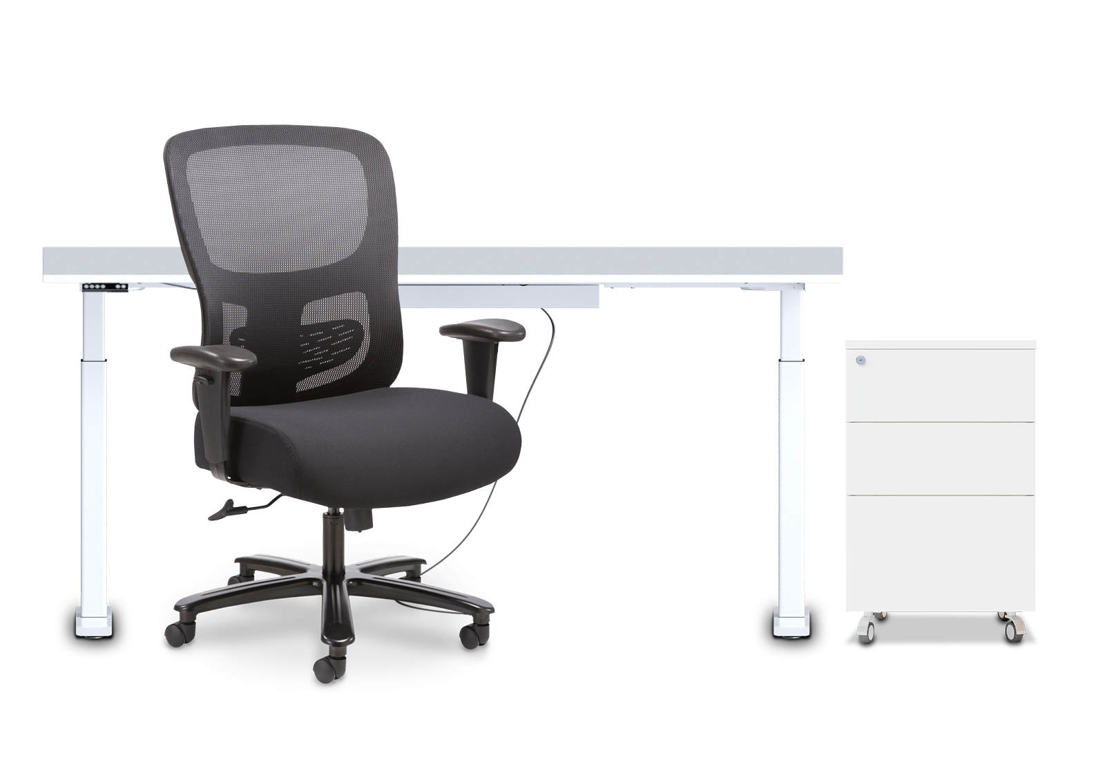 Ensemble de mobilier de bureau : Chaise de bureau XXL TINA, bureau réglable en hauteur MILLA200 et caisson roulant FRIDA de TOPREGAL