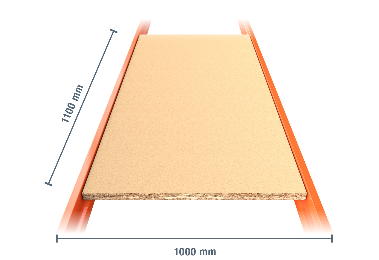 - 1 x 1.100 mm platelage en bois pour rack de stockage LR2000 / profondeur 1.000 mm / épaisseur 25 mm
