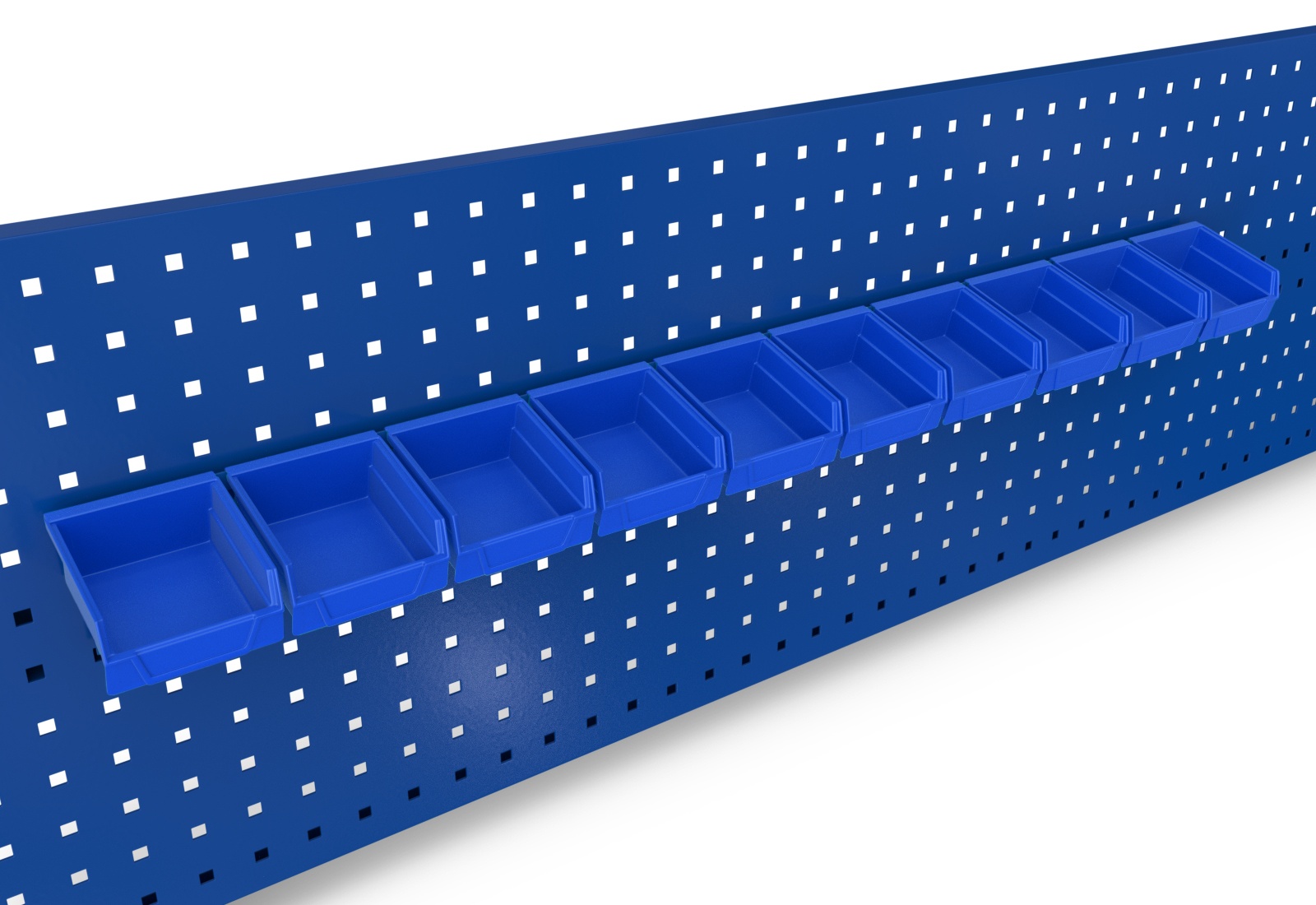 Le rail convient parfaitement pour équiper les TOPREGAL Grâce à sa construction modulaire enfichable, il est facile à monter sur notre paroi perforée et peut être étendu à volonté.