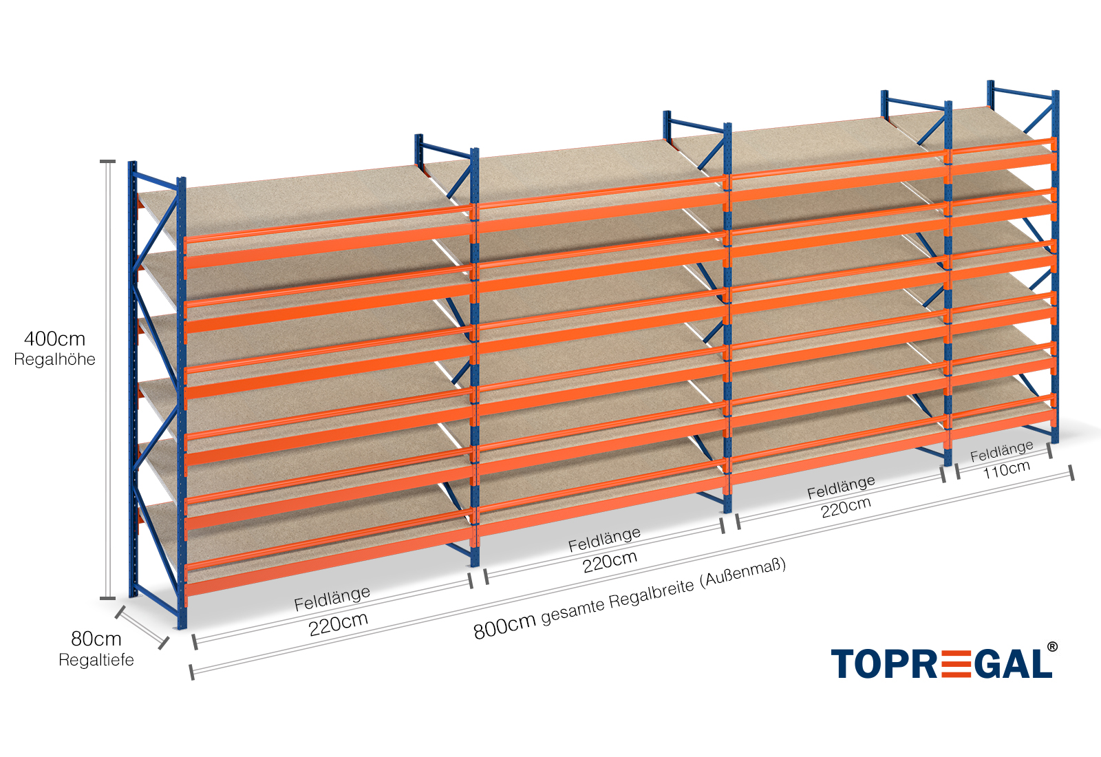 Toutes les données se réfèrent à des charges uniformément réparties. En cas de chargement, la charge par plateau et la charge par travée ne doivent pas être dépassées. En principe, les directives actuelles sur la sécurité et la santé au travail s'appliquent lors de l'utilisation (Règle DGUV allemande 208-061). TOPREGAL décline toute responsabilité en cas d'accidents/dommages dus à une utilisation non conforme. Notre équipe de conseillers spécialisés répondra à vos questions à ce sujet. Les dimensions indiquées sont approximatives et peuvent varier de quelques centimètres. Contactez-nous si vous avez besoin des dimensions exactes du produit que vous souhaitez acheter.