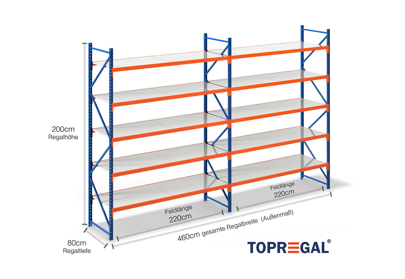Toutes les données se réfèrent à des charges uniformément réparties. En cas de chargement, la charge par plateau et la charge par travée ne doivent pas être dépassées. En principe, les directives actuelles sur la sécurité et la santé au travail s'appliquent lors de l'utilisation (Règle DGUV allemande 208-061). TOPREGAL décline toute responsabilité en cas d'accidents/dommages dus à une utilisation non conforme. Notre équipe de conseillers spécialisés répondra à vos questions à ce sujet. Les dimensions indiquées sont approximatives et peuvent varier de quelques centimètres. Contactez-nous si vous avez besoin des dimensions exactes du produit que vous souhaitez acheter.