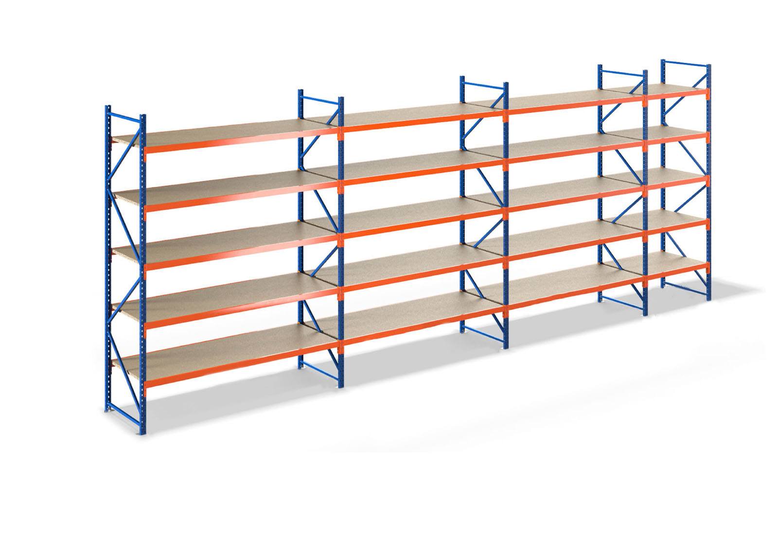 8,0 m rayonnage de stockage LR2000 / profondeur 60 cm / hauteur 2,5 m / 5 niveaux / platelage Bois
