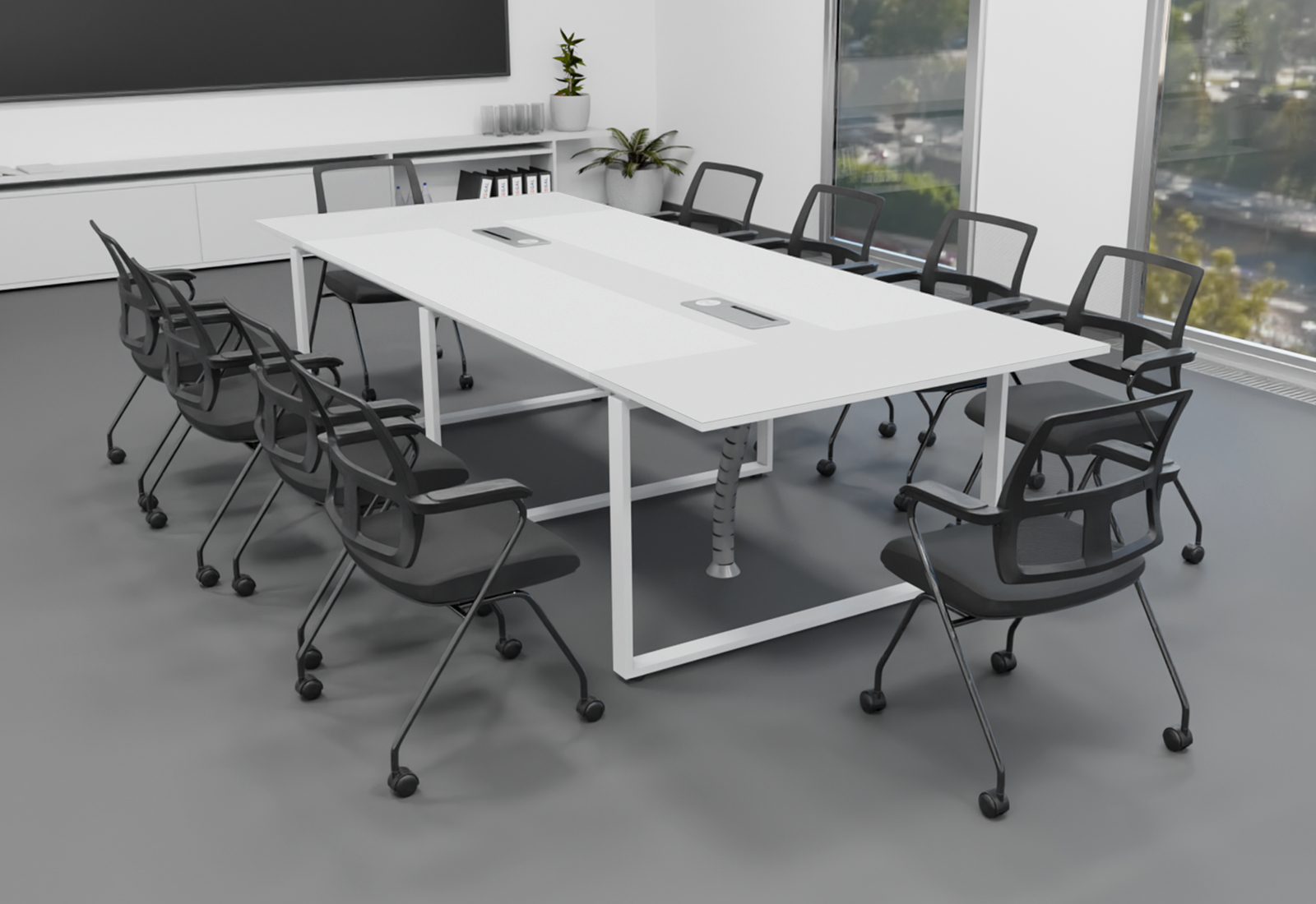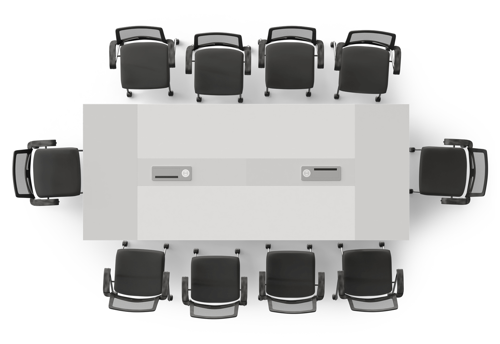 Ensemble de table de conférence ANJA280i en Gris lumière-blanc avec station de recharge à induction + 10 chaises EMMA