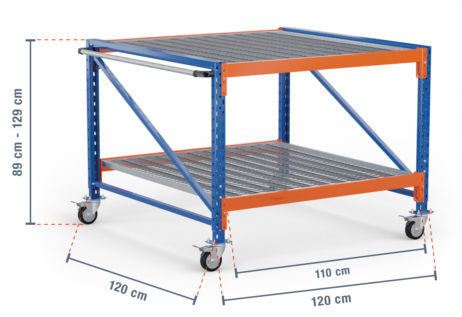 1,2 m table de travail mobile MFW1000-AT / profondeur 120 cm / hauteur 890 - 1.290 mm / 2 niveaux / platelage Grillage