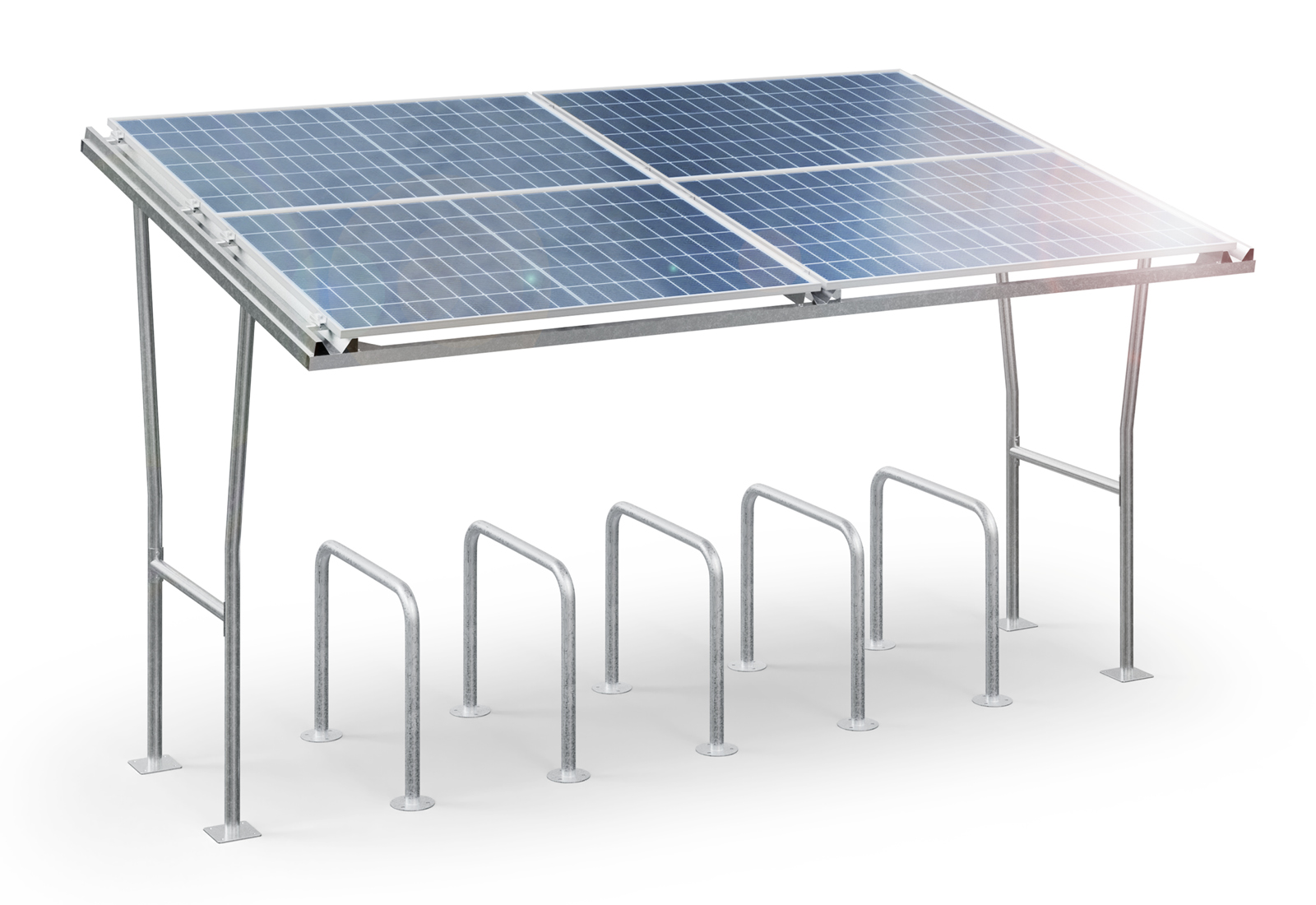 - 1x Abri à vélo avec 4 panneaux solaires F350/5-S pour 12 Vélos (3.652 mm x 2.253 mm x 2.319 mm) y compris le matériel de montage