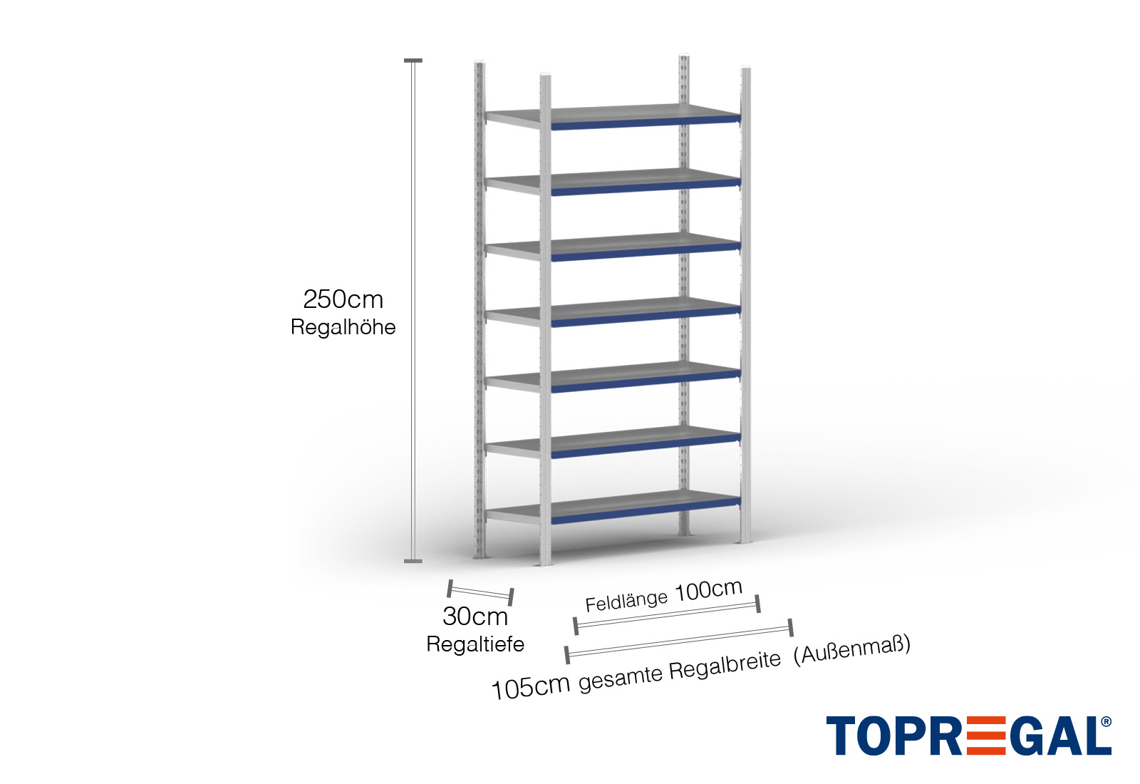 Alle gegevens hebben betrekking op gelijkmatig verdeelde belastingen. Bij belasting mogen de plankbelasting en de veldbelasting niet worden overschreden. In principe gelden tijdens het gebruik de huidige richtlijnen voor veiligheid en gezondheid op het werk (Duitse DGUV-regel 208-061). TOPREGAL is niet aansprakelijk voor ongevallen/schade die ontstaan door ondeskundig gebruik. Ons deskundige adviesteam beantwoordt graag al uw vragen. De opgegeven afmetingen zijn bij benadering en kunnen enkele centimeters afwijken. Neem contact met ons op als u de exacte afmetingen voor uw gewenste product nodig hebt.