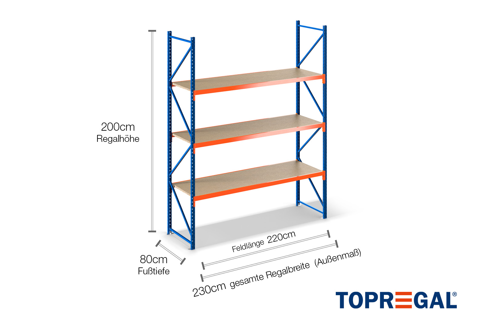 2,3 m magazijnstelling LR2000 / 80 cm diep / 2 m hoog / 3 niveaus / bodem hout