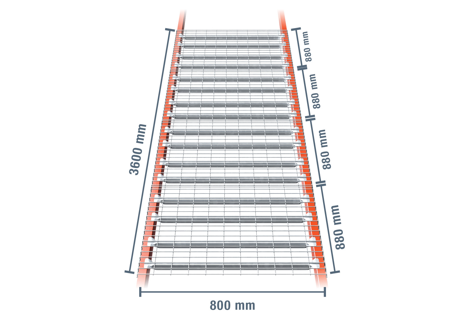 360 cm bodem van draadgaas voor palletstelling PR9000/800 mm diep/belasting 2.200 kg