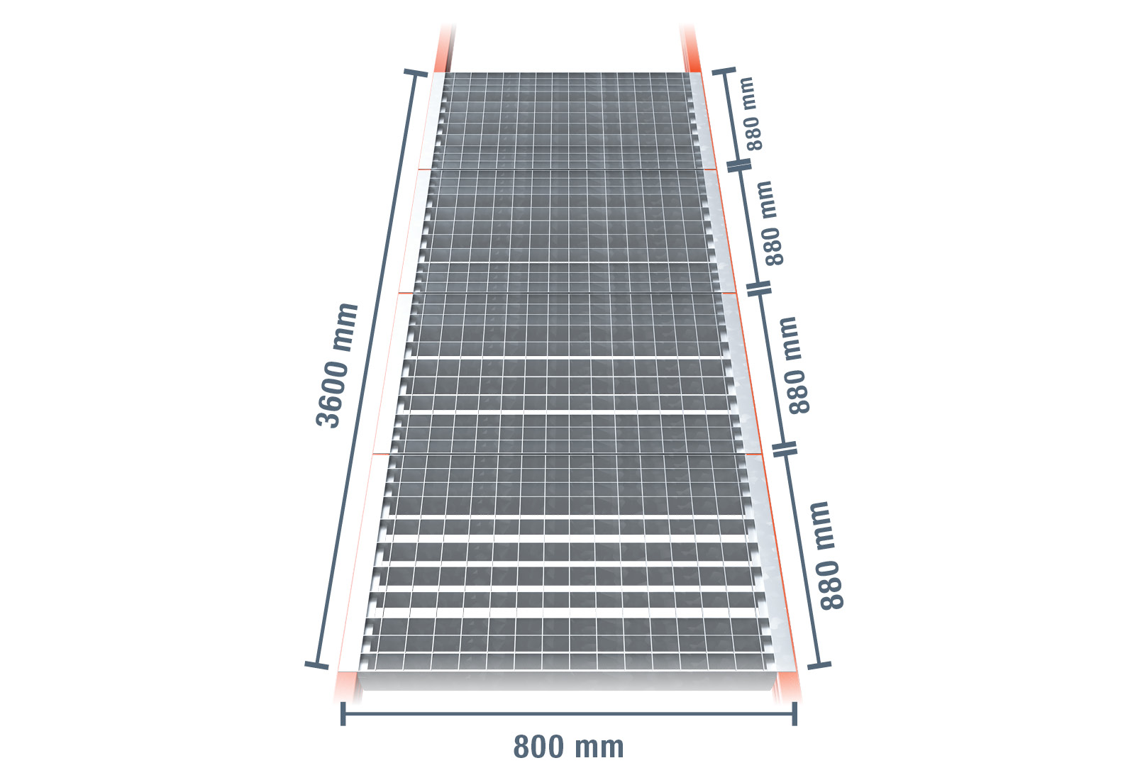 3.600 mm gegalvaniseerd rooster verzinkt voor palletstelling PR15000 / 800 mm diep / belasting 3.200 kg