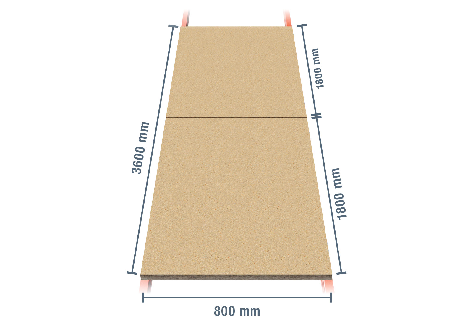 - 1 x 3.600 mm houten bodem voor palletstelling PR15000 / 800 mm diep / 38 mm dik (bestaande uit 2 180 cm modules)