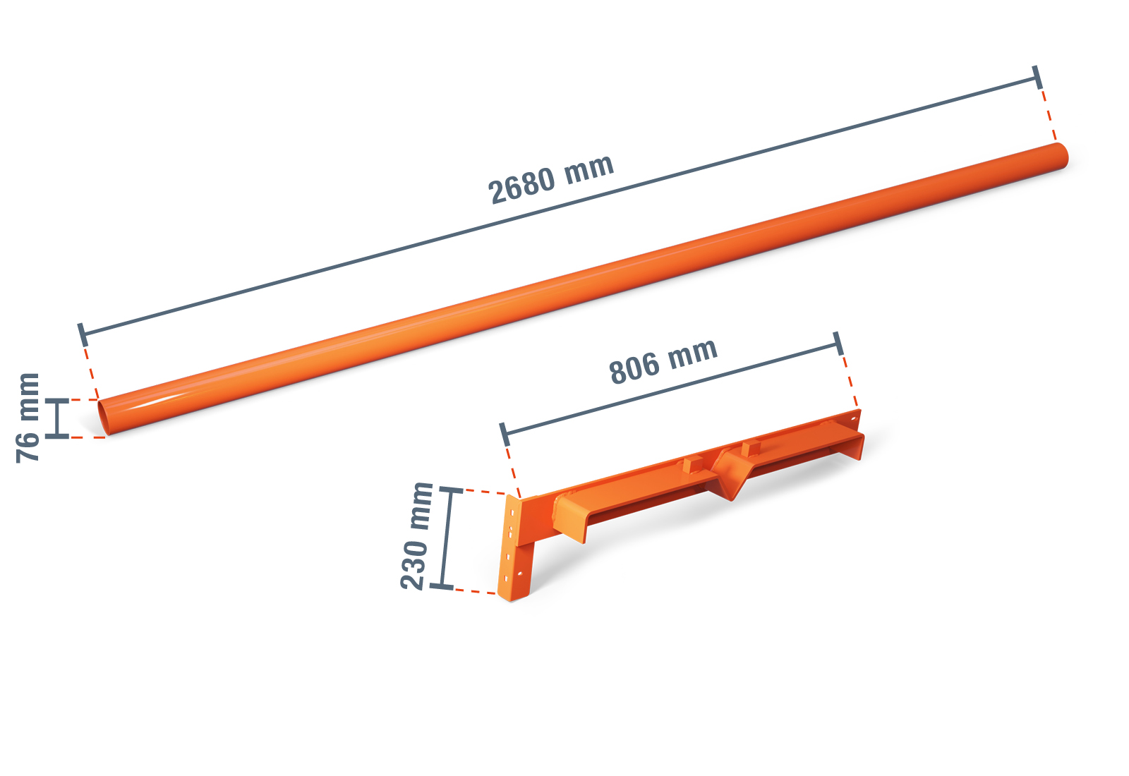Het oranje gelakte oppervlak zorgt voor optimale zichtbaarheid en veiligheid in uw magazijn. Dankzij de flexibele ophanging in een 50 mm Raster passen de ophangingen naadloos in uw palletstelling en creëren ze een efficiënte, ruimtebesparende opslagoplossing.