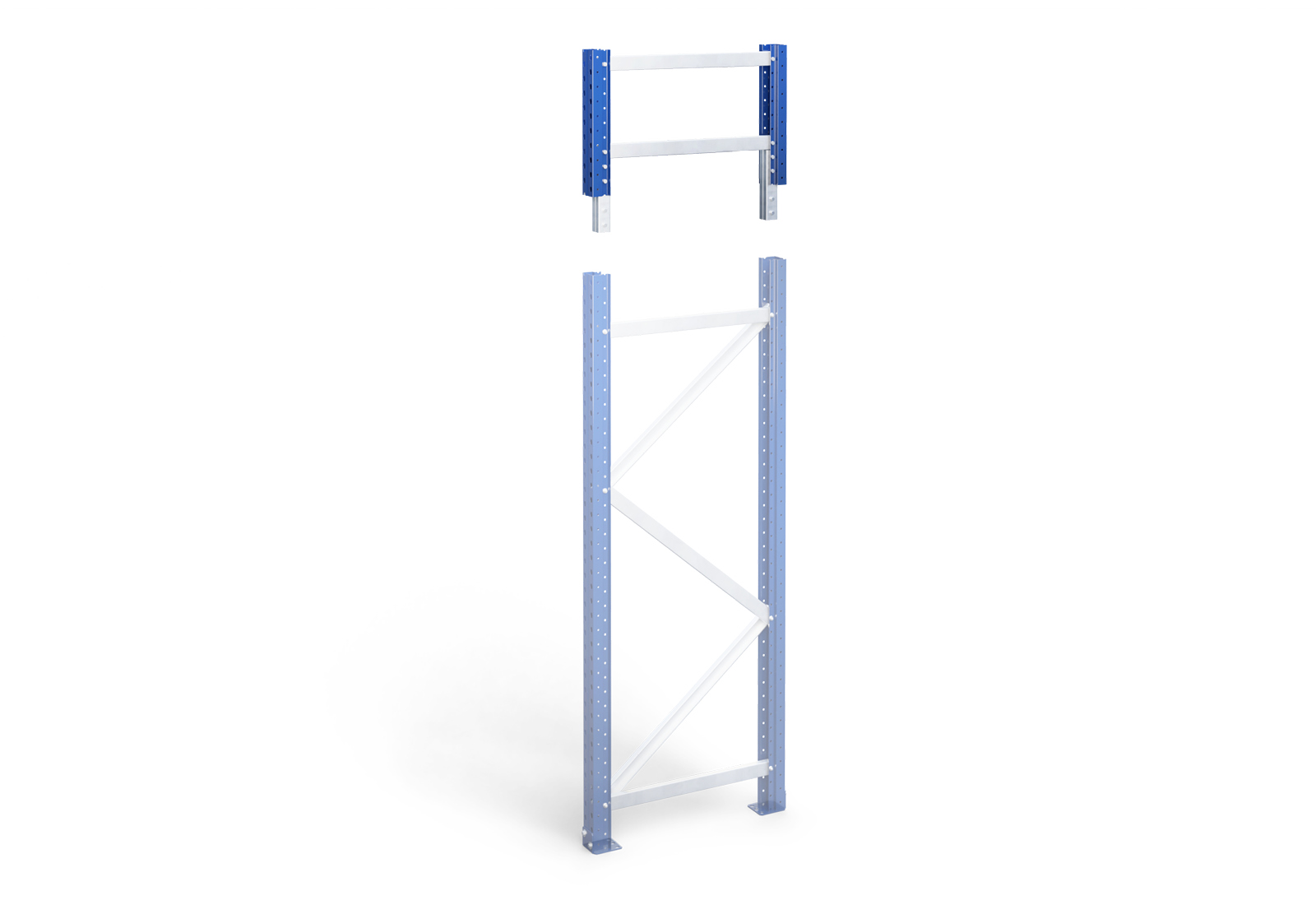 In opslag en logistiek zijn veiligheid en optimaal ruimtegebruik belangrijke criteria voor het efficiënt verzamelen van materialen en goederen. Onze eindframe-uitbreiding speelt een doorslaggevende rol bij het waarborgen van de veiligheid in uw magazijn. Het is ontwikkeld om te voorkomen dat opgeslagen goederen van de bovenste niveaus van de stellingen vallen, wat niet alleen de goederen beschermt maar ook de werkplek veiliger maakt voor uw werknemers.