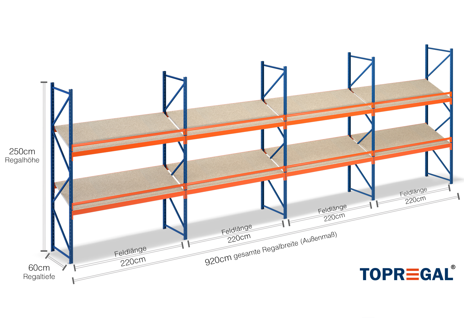 Alle gegevens hebben betrekking op gelijkmatig verdeelde belastingen. Bij belasting mogen de plankbelasting en de veldbelasting niet worden overschreden. In principe gelden tijdens het gebruik de huidige richtlijnen voor veiligheid en gezondheid op het werk (Duitse DGUV-regel 208-061). TOPREGAL is niet aansprakelijk voor ongevallen/schade die ontstaan door ondeskundig gebruik. Ons deskundige adviesteam beantwoordt graag al uw vragen. De opgegeven afmetingen zijn bij benadering en kunnen enkele centimeters afwijken. Neem contact met ons op als u de exacte afmetingen voor uw gewenste product nodig hebt.